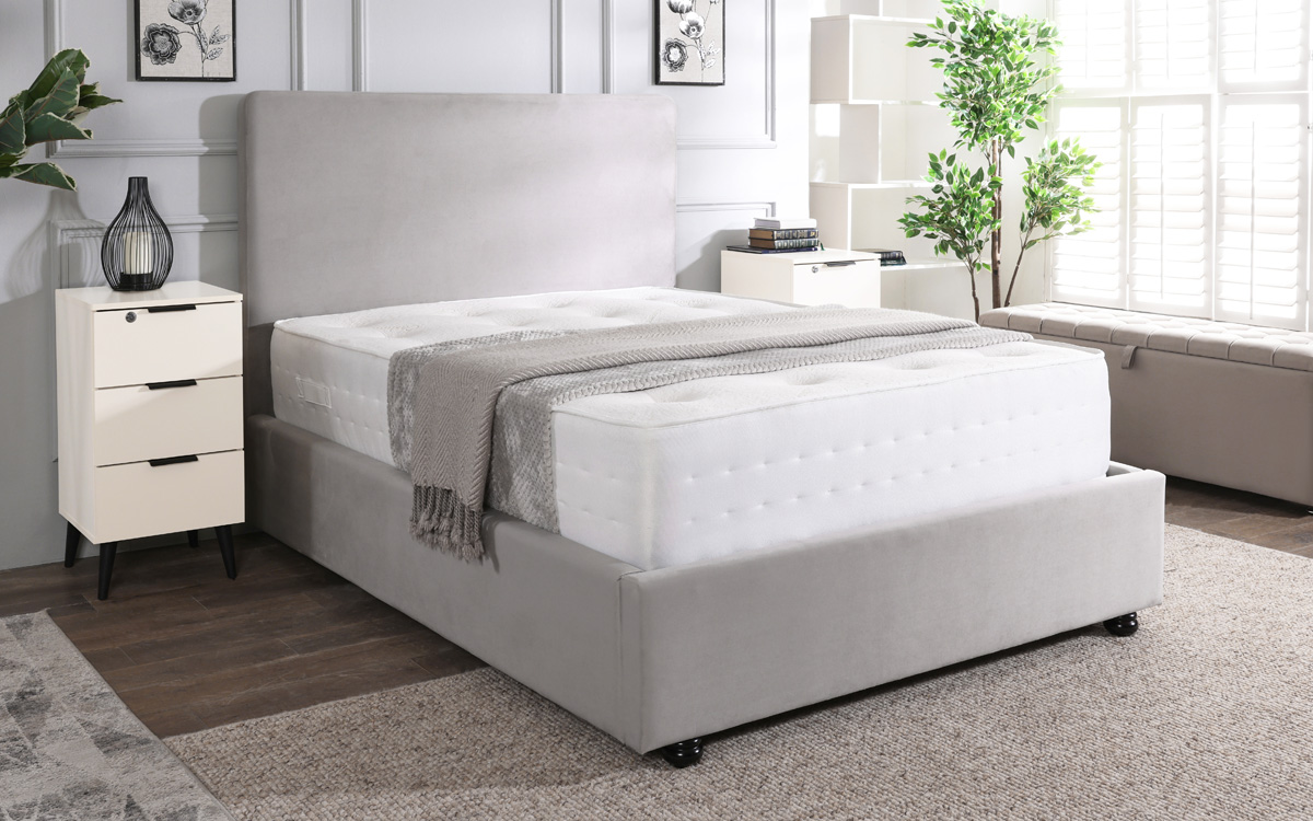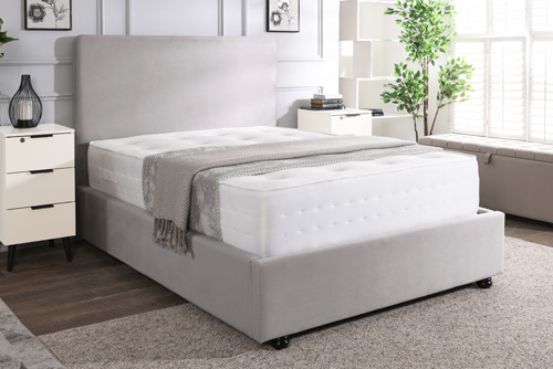 - Bed frame shown in Plush Velvet Light Grey (B8)