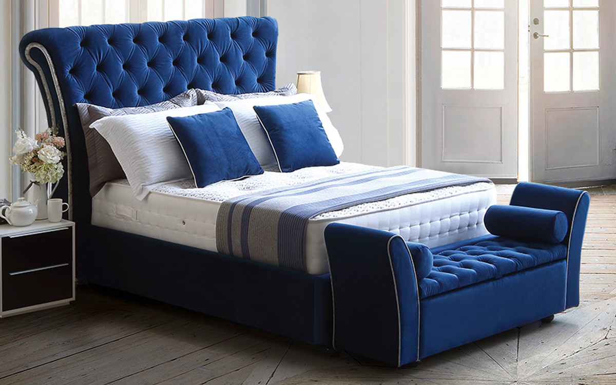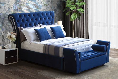 - Bed frame shown in Plush Velvet Blue (B1)